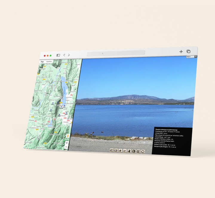 Mise en page des photomontages sur la base d’une charte et d’un format prédéfinis. Outil de mise en ligne des photomontages sous forme de visite virtuelle, navigation sur une carte interactive. Photomontages à 360°.